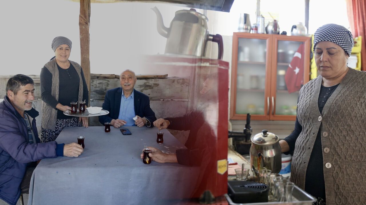 Eşinin de desteğiyle ocağın başına geçen Köse, 14 yıldır mahallelinin çayını demliyor.