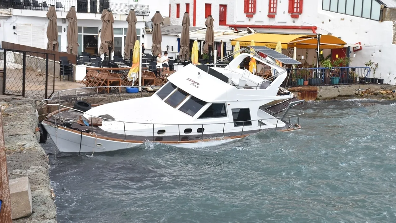 Bodrum''da sabah saatlerinde kısa süreli sağanak etkili oldu. Zaman zaman rüzgarın da kuvvetli olduğu ilçede 12 metrelik bir tekne kıyıya sürüklendi.