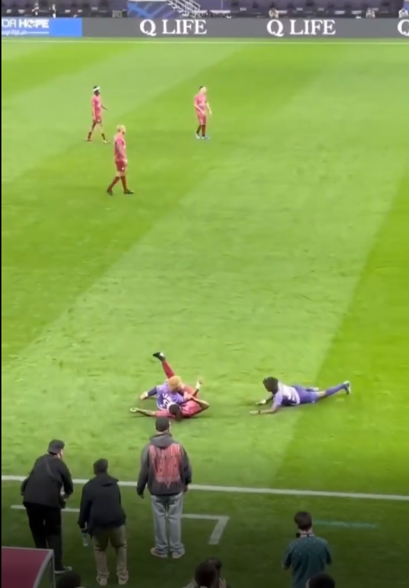 Doha’da düzenlenen hayır organizasyonu Match for Hope, futbolseverlere unutulmaz ve bir o kadar da eğlenceli bir an yaşattı. Maç sırasında sahada beklenmedik bir 'uçuş' gerçekleşti; Bir oyuncu, diğerinin kucağına adeta WWE ringindeki bir hamleyi andıran bir şekilde zıpladı. Tribünler hem şaşkınlık hem de kahkaha ile coşarken, o an organizasyonun en çok konuşulan ve sosyal medyada en çok paylaşılan görüntüsü ortaya çıktı.