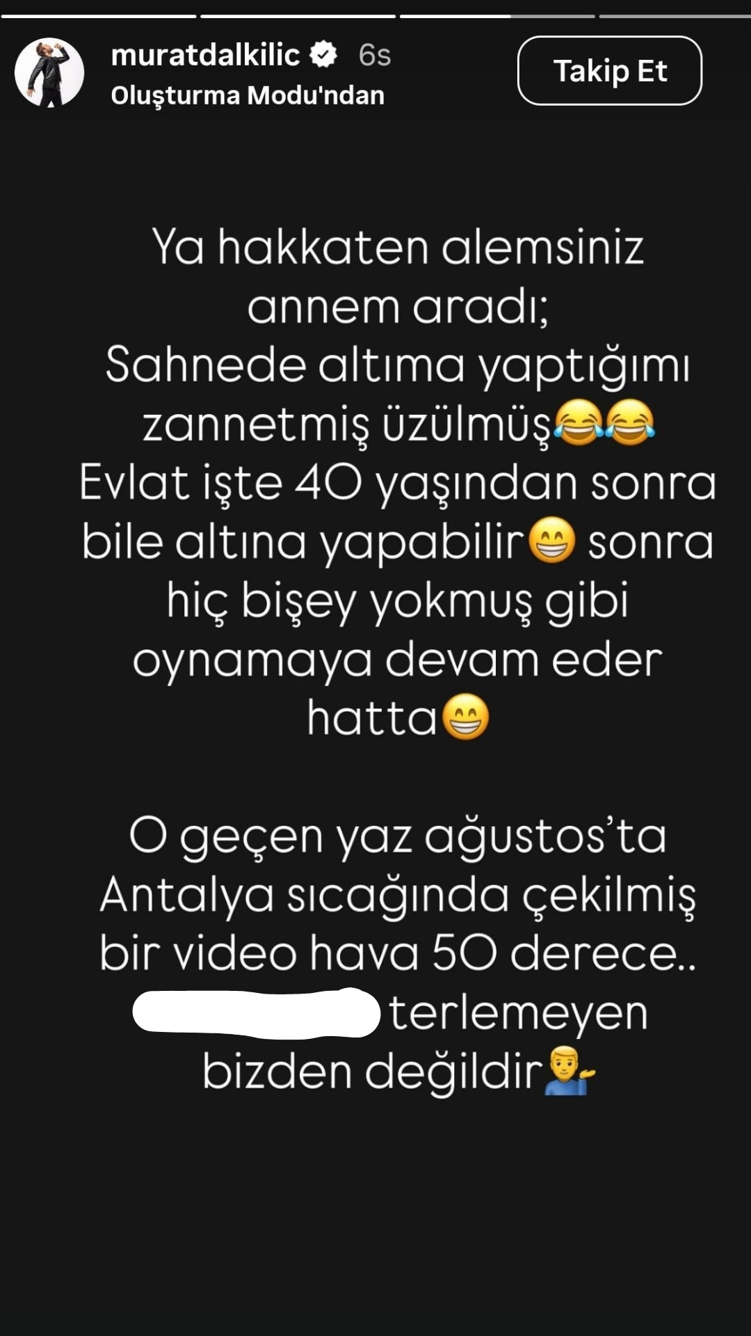 Görüntülerin ardından sessiz kalmayan Dalkılıç, konuyu esprili bir dille açıklığa kavuşturdu. Ünlü şarkıcı, annesinin kendisini aradığını belirterek, “Hakikaten alemsiniz, annem aradı. Sahnede altıma yaptığımı zannetmiş, üzülmüş” ifadelerini kullandı. Söz konusu videonun geçen yıl ağustos ayında, yaklaşık 50 dereceyi bulan Antalya sıcağında çekildiğini söyleyen Dalkılıç, durumun hava koşullarından kaynaklandığını belirtti.