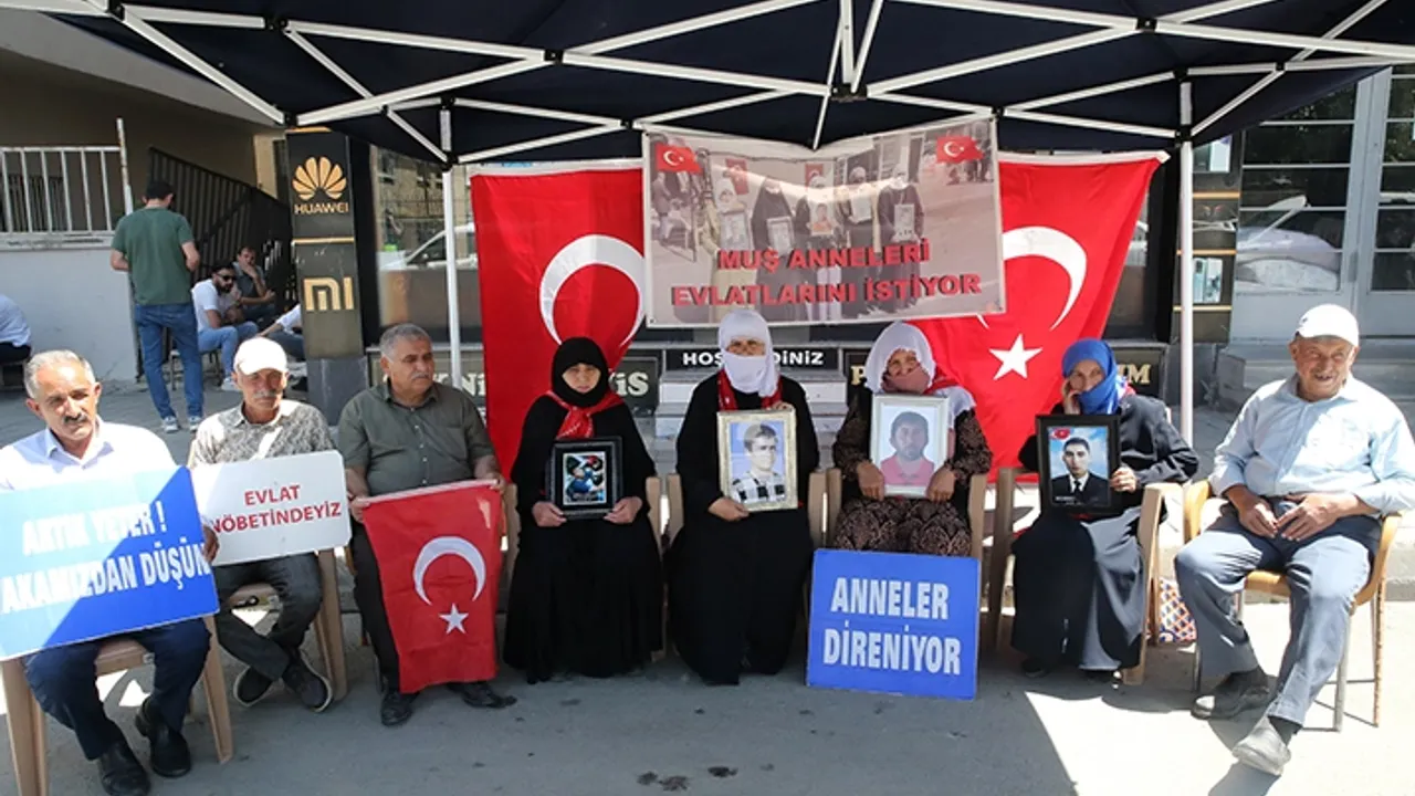 Muş''ta, terör örgütü PKK tarafından kaçırılan çocukları için mücadele eden aileler, DEM Parti İl Başkanlığı binası önündeki eylemlerine kararlılıkla devam ediyor.