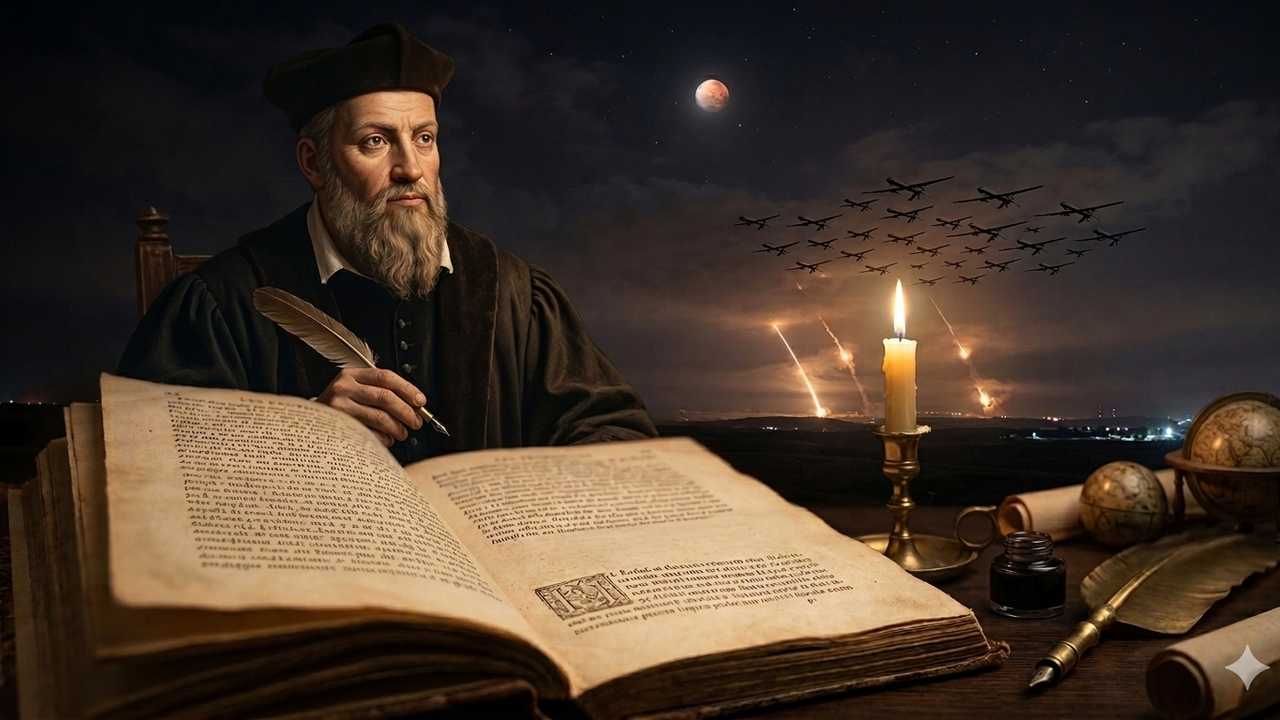 16’ncı yüzyılda yaşamış olan ünlü Fransız kâhin Nostradamus’un (Michel de Nostredame) 1555 yılında kaleme aldığı “Les Propheties” (Kehanetler) adlı eseri, ABD ve İsrail’in İran’a yönelik operasyonlarıyla tekrar tartışılmaya başlandı. Nostradamus’un bu kitaptaki 2026 yılı kehanetine göre, İran Savaşı şiddetini artırarak yedi ay sürecek.