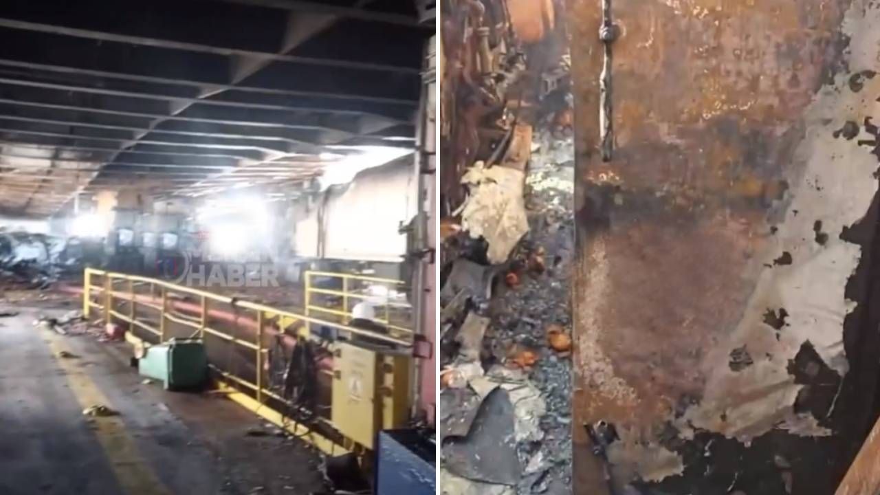 Mersin Haber'in paylaştığı videoda vurulan geminin son hali ortaya çıktı.