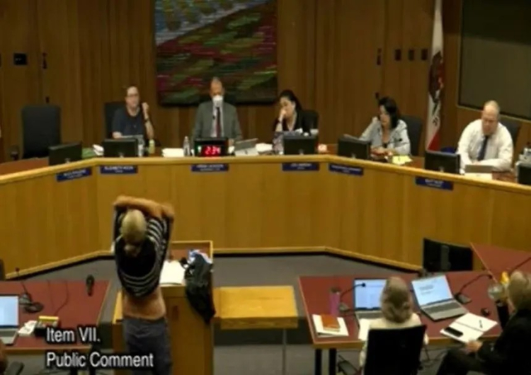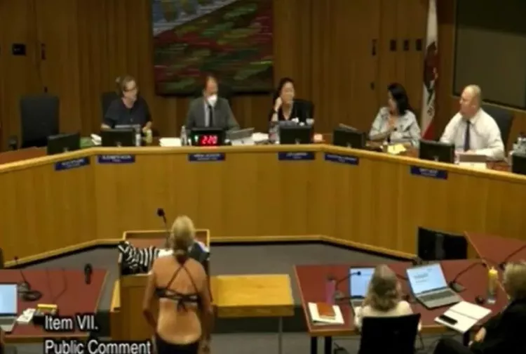 Yolo County''deki Moms for Liberty''nin başkanlığını yürüten 50 yaşındaki aktivist Bourne, 18 Eylül''de Davis Joint Unified School Board toplantısında transseksüel soyunma odası politikasını protesto etmek amacıyla "Size soyunduğumda nasıl göründüğüne dair bir fikir vereceğim" diyerek üstündeki kıyafetleri çıkarmaya başladı. Bourne, "Bu okul bölgesi, bir çocuğun transseksüel kimliğine bağlı olarak istediği tuvaleti seçebileceğini söylüyor." ifadelerini kullandı. Aktivistin gömleğini çıkarıp altındaki bikiniyi göstermesi üzerine bir yönetim kurulu üyesi "Hayır, giyemezsin..." diye tepki gösterdi, ancak Bourne "Mayom üzerimde" diyerek karşılık verdi.