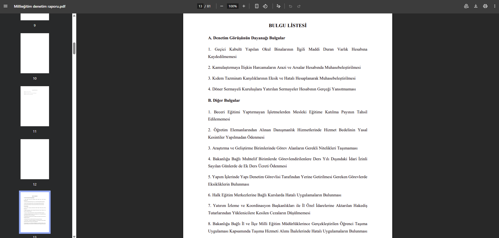 Denetim raporunda yer alan bulgular, kamu mali yönetiminde şeffaflık ve hesap verebilirlik konusunu yeniden gündeme taşıdı.