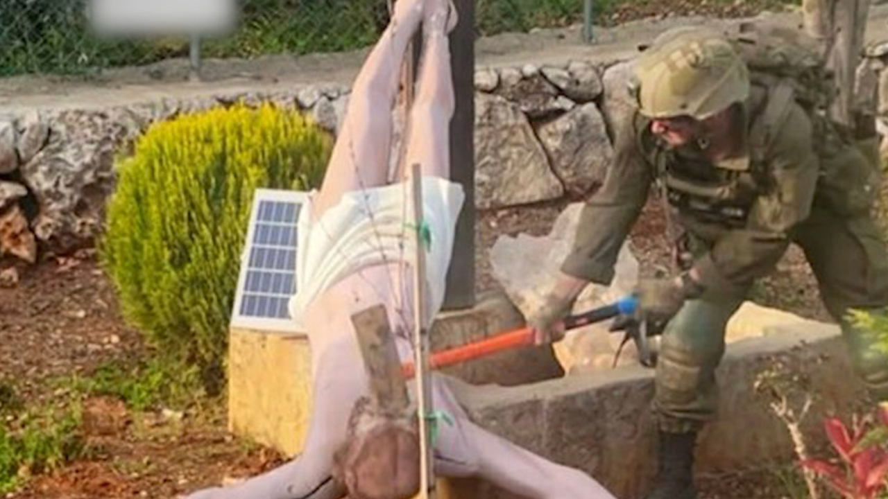 Lübnan'ın güneyinde sınıra 5-6 kilometre uzaklıktaki Deyr Seryan beldesinde, bir İsrail askerinin İsa heykelini baltayla kırdığını gösteren fotoğraf sosyal medyada paylaşılmıştı.