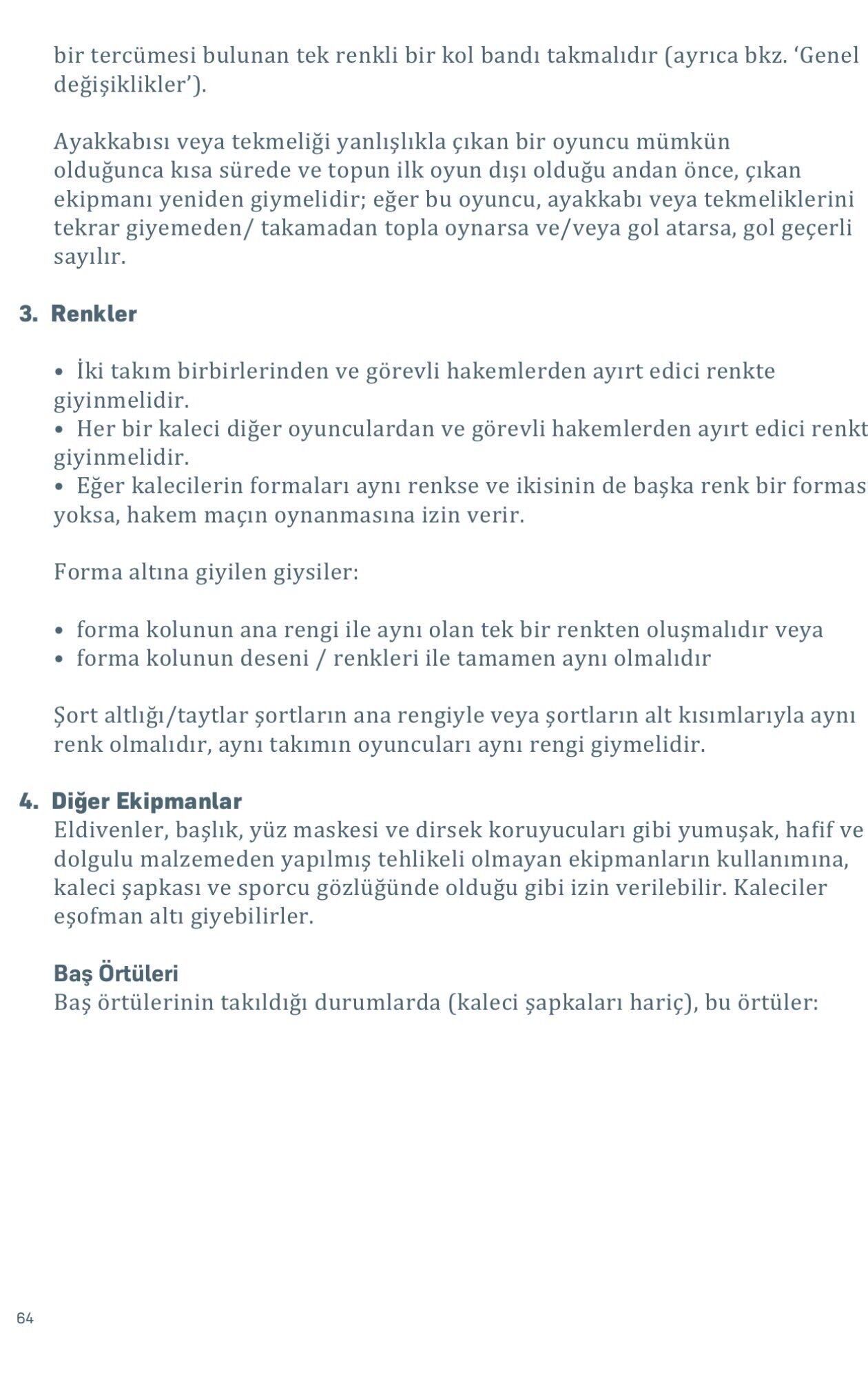 Kurala göre, rakip oyuncuya zarar vermeyecek şekilde tasarlanmış koruyucu ekipmanların kullanımı serbest bırakılıyor. Bu kapsamda sporcular için özel olarak üretilen koruyucular, saha içinde güvenlik amacıyla tercih edilebiliyor.