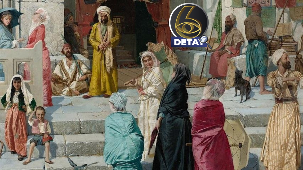 Osman Hamdi Bey'in kendisini 3 farklı figür olarak resmettiği tablodaki mekanın Bursa'daki Muradiye Camisi'nin ana giriş kapısı olduğu ifade ediliyor.