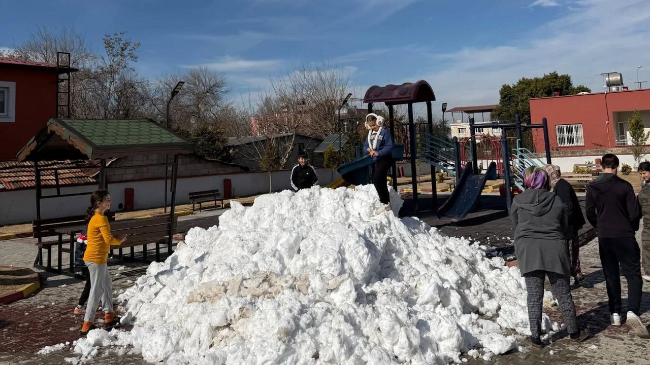 Toprakkale Belediyesi ekiplerince Karataş Mahallesi Kale Park'a bir kamyon dolusu kar getirildi. Parkta kar sürpriziyle karşılaşan çocuklar, sevinçle kar topu oynayıp kardan adam yaparak yarıyıl tatilinin keyfini çıkardı.