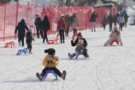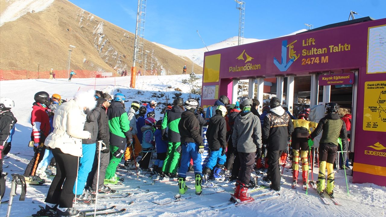 Hafta sonu tatilini Palandöken'de geçiren aileler çocuklarıyla kızağa bindi, yerli ve yabancı turistler kayak ile snowboard yaparak eğlenceli vakit geçirdi.