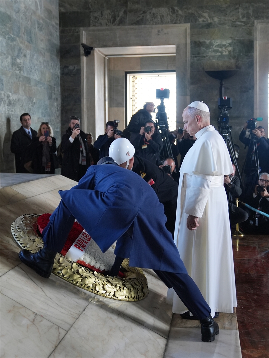 Papa 14. Leo'nun ilk durağı da Mustafa Kemal Atatürk'ün ebedi istirahatgahı Anıtkabir oldu. Mozoleye çelenk bırakıp saygı duruşunda bulunan Papa 14. Leo buradan Misak-ı Milli Kulesi'ne geçerek Anıtkabir Özel Defteri'ni imzaladı.