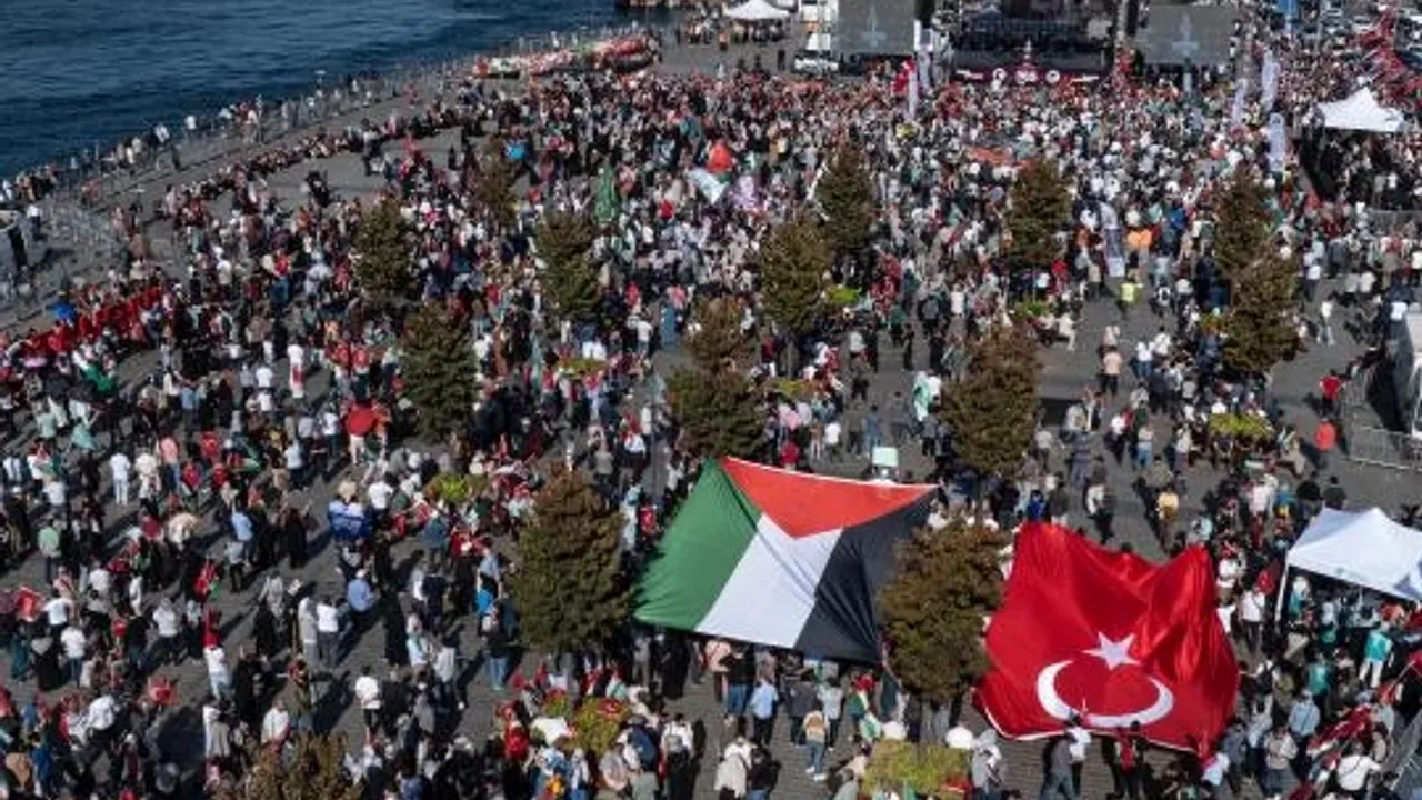 İnsan ve Medeniyet Hareketi Genel Merkezi''nde gerçekleştirilen basın toplantısında, Filistin''e Destek Platformu çatısı altında bir araya gelen STK temsilcileri, 5 Ekim Pazar günü Ayasofya Camii''nden Eminönü Meydanı''na yapacakları yürüyüşe katılım çağrısında bulundu.