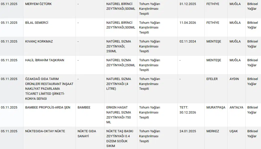 5 Kasım tarihinde son yapılan güncellemede “Sağlığı Tehlikeye Düşürecek Gıdalar" ile "Taklit veya Tağşiş Yapılan Gıdalar" listesinde birçok yeni ürün ve marka listeye eklendi.