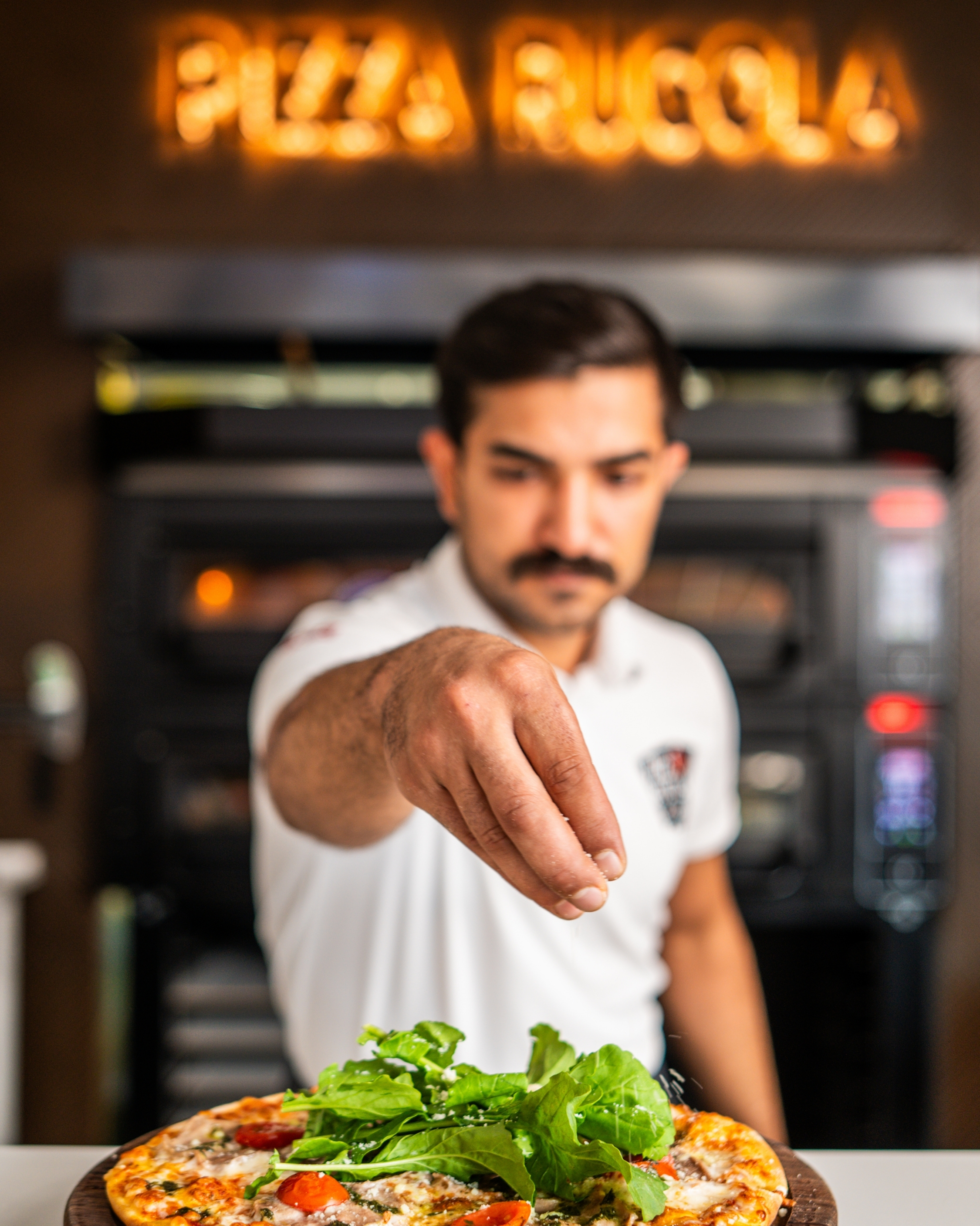 “Rucola” Fince “roka” demek, zaten masalara da ilk olarak onu servis ediyoruz. Markanın kurucusu Levent Kerimoğlu, Finlandiya'ya gidiyor ve orada şeflik yapıyor. Pizzayla da orada tanışıyor. 12 sene orada kalıp bu işi yaptıktan sonra İzmir’e geliyor ve yerleşiyor. İzmir’de ilk Pizza Rucola’yı açıyor ki zaten Finlandiya’da da var. İzmir’deki ikinci oluyor. Ondan sonra da başlayan bir serüven. Şu anda Türkiye’de yedi şubeyiz, 8’inciyi de Ankara'ya açıyoruz. Dokuzuncu da Finlandiya’daki ilk şube.