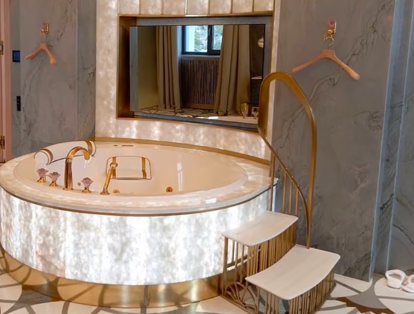 İç mekânlarda altın kaplama merdivenler, banyolar ve jakuzi dikkat çekiyor. Araştırmacılara göre, yalnızca bir banyonun armatürlerinin maliyeti birçok şehirde bir daire almaya yetecek düzeyde.