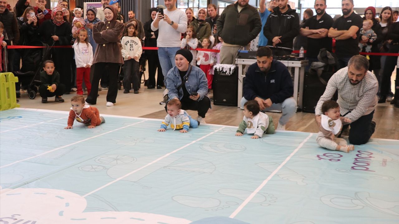 Başlangıç çizgisinden emekleyerek anne ve babalarına ulaşmaya çalışan bebekler, ailelerinin gösterdiği oyuncak, biberon ve telefonla varış alanına ilerlemeye çalıştı.