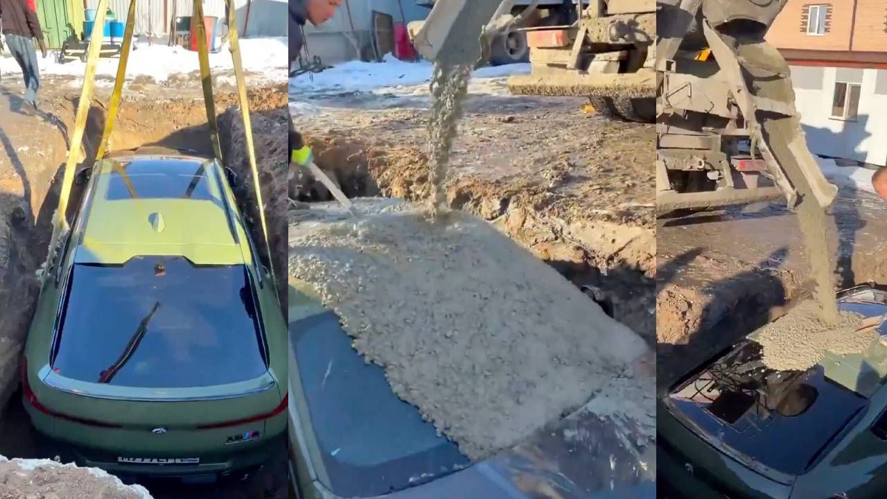 Rus milyarder BMW’nin bu üst seviye performans modeli (X6 M CS), yüksek güç ve lüks donanımıyla bilinen aracını toprağa gömerek üzerine beton döktü.