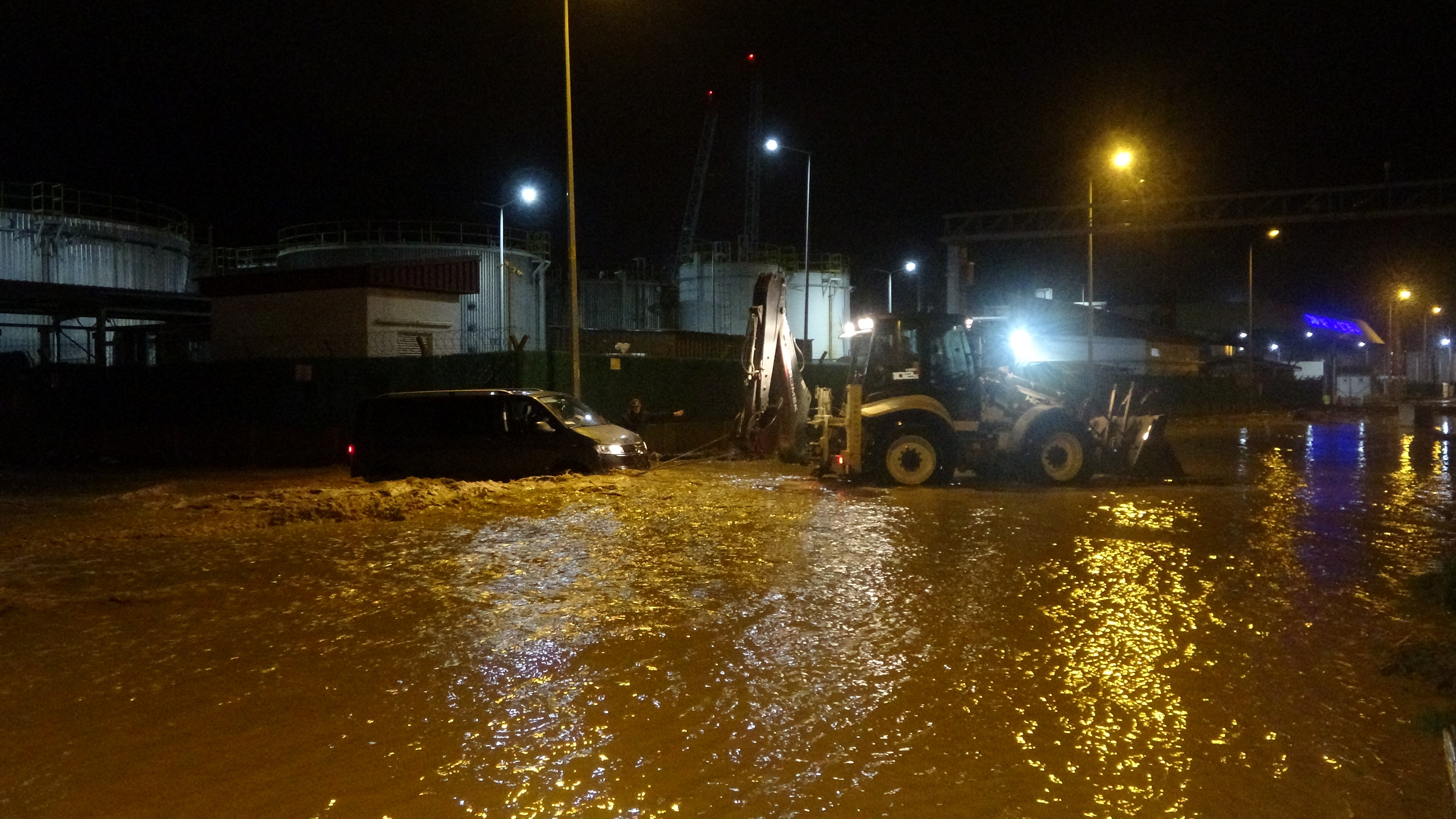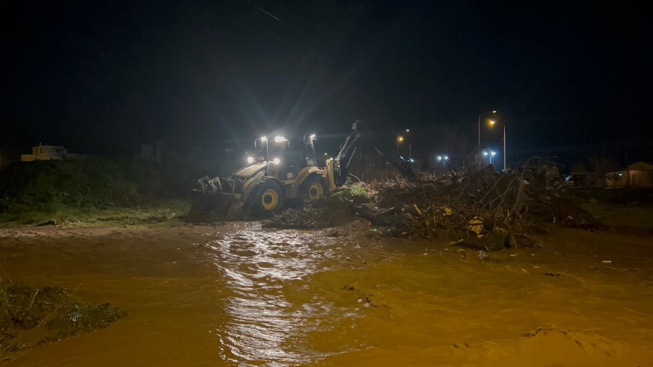 Sel sularının yükselmesi sonucu bölgede bir hafif ticari araç mahsur kaldı. İhbar üzerine olay yerine sevk edilen belediye ekipleri, iş makineleriyle temizlik ve müdahale çalışması başlattı.