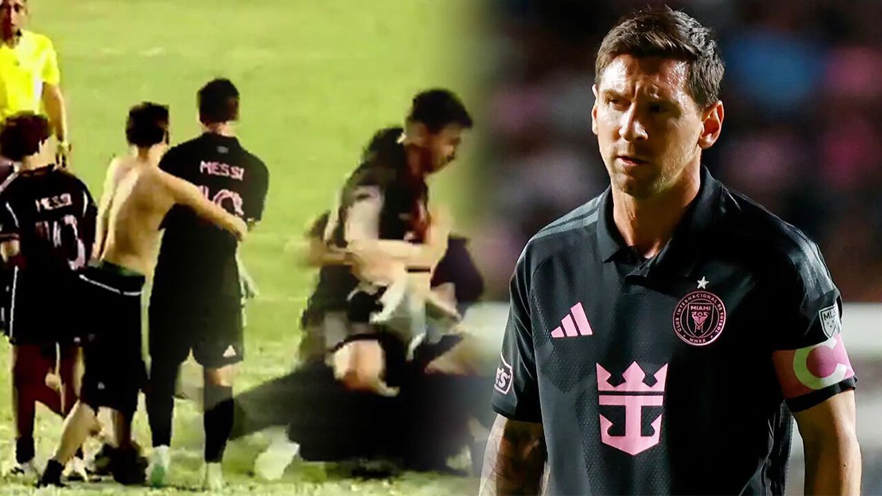 Inter Miami’nin 2-1 kazandığı hazırlık maçında Arjantinli süperstar Lionel Messi, sahaya giren bir taraftarın müdahalesiyle yere düştü.