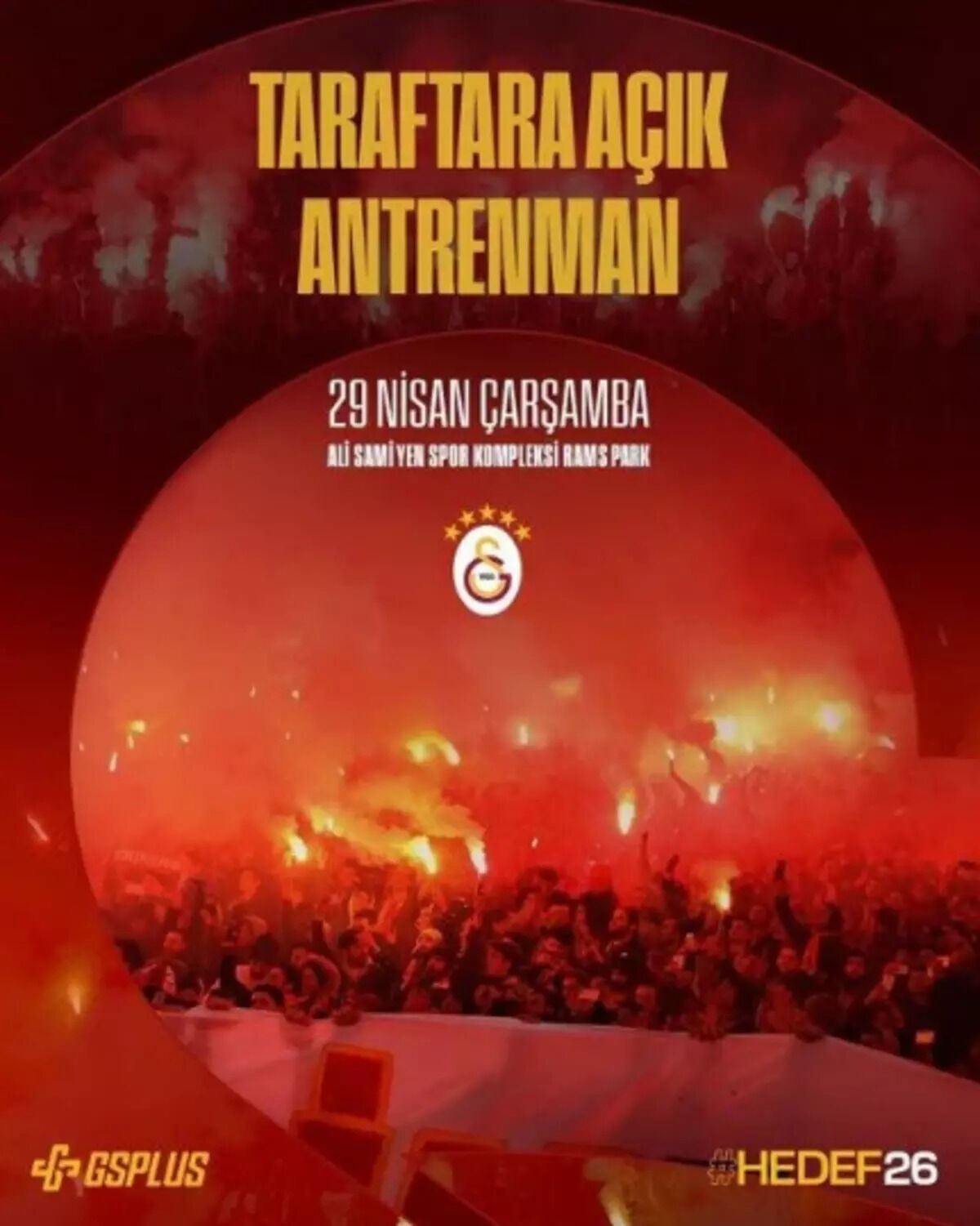 Şampiyonluk ateşinin yanacağı bu özel idman, 29 Nisan Çarşamba günü RAMS Park'ın ev sahipliğinde yapılacak. "Hedef 26" parolasıyla zafere kilitlenen Galatasaray kafilesi, Karadeniz yolculuğu öncesi on binlerce taraftarının desteğiyle şampiyonluk provası yapacak.