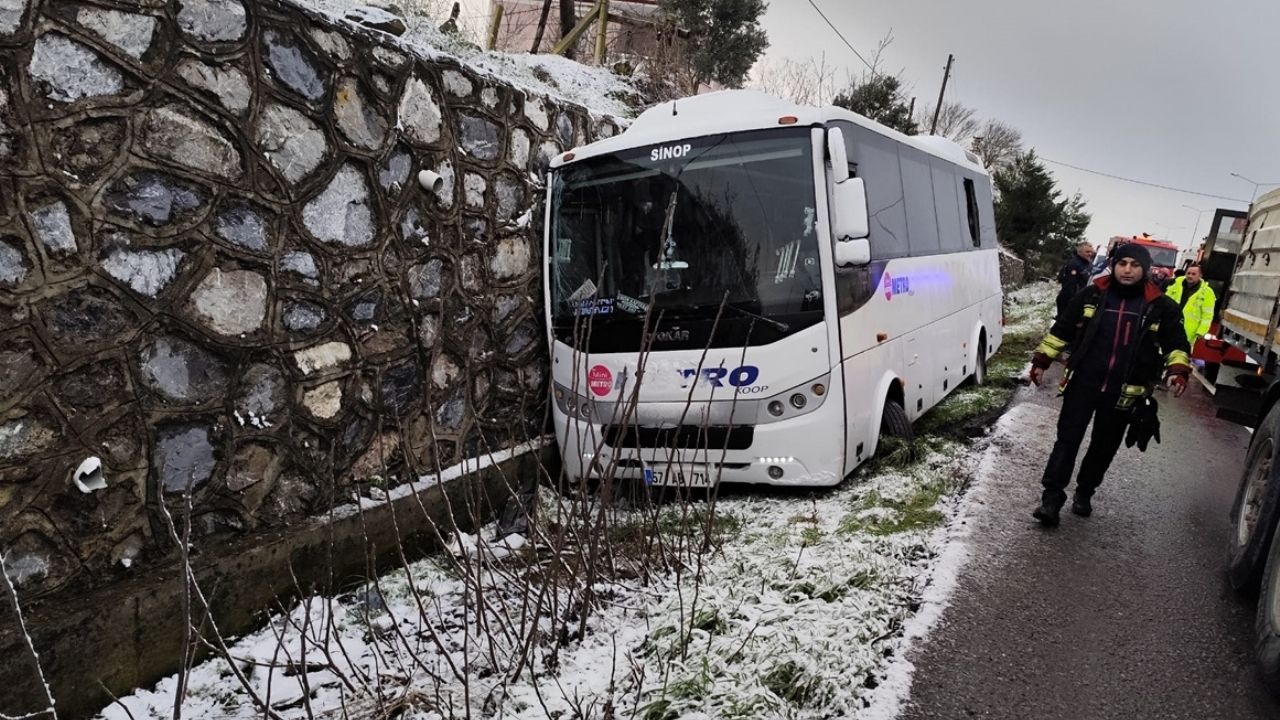 Sinop-Samsun kara yolu Elifli Mahallesi mevkisinde iki aracın karıştığı hasarlı kaza sonucu araçlarından inip yolun sağ kısmında bekleyenlere E.Ü. (56) yönetimindeki 57 AB 714 plakalı yolcu otobüsü çarptı. Yolcu otobüsü, ardından istinat duvarına çarparak durabildi.