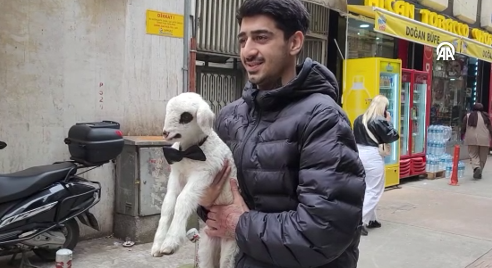 Saathane Meydanı'nda kuzuyu gören Dursun Şimga ise şaşırdığını dile getirerek, "Köpek, kedi olur ama kuzu olunca şaşırdık. Şuraya bak. Bir aylık bir şey." dedi.