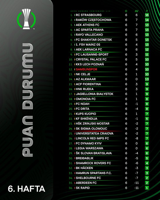 İlk 8’in dışında kalan Samsunspor, UEFA Konferans Ligi’nde yoluna son 16 play-off turunda devam edecek. Temsilcimiz, Avrupa arenasında yeniden çıkış arayacak.