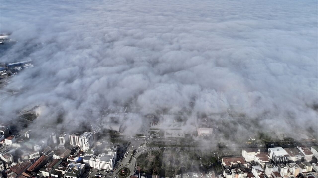 Karadeniz'in üzerini kaplayan "sis denizi" dronla görüntülendi.