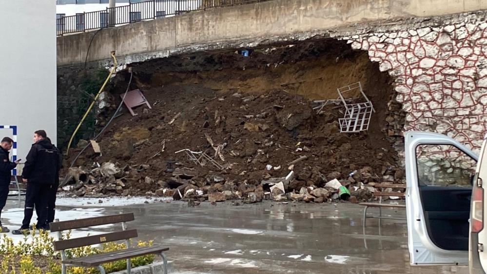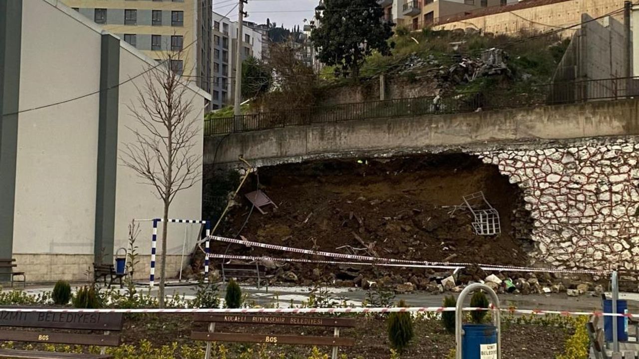 Olay, İzmit Cedit Mahallesi'nde yapımı süren bir inşaat sahasında meydana geldi. İş makinesinin çalıştığı bölgede bulunan yaklaşık 10 metre yüksekliğindeki istinat duvarı, bir anda Mimar Sinan Anadolu Lisesi'nin bahçesine doğru göçtü.