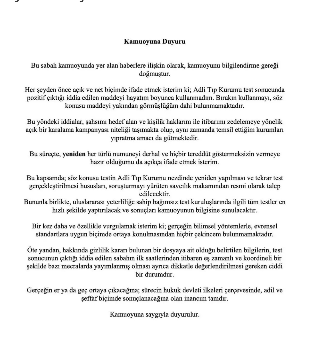 Kokain testinin pozitif çıktığı yönündeki iddialarla gündeme gelen Sadettin Saran’dan açıklama geldi. Saran, söz konusu iddiaları kesin bir dille yalanlayarak, “Testte pozitif çıktığı öne sürülen maddeyi hayatım boyunca hiç kullanmadım” ifadelerini kullandı.