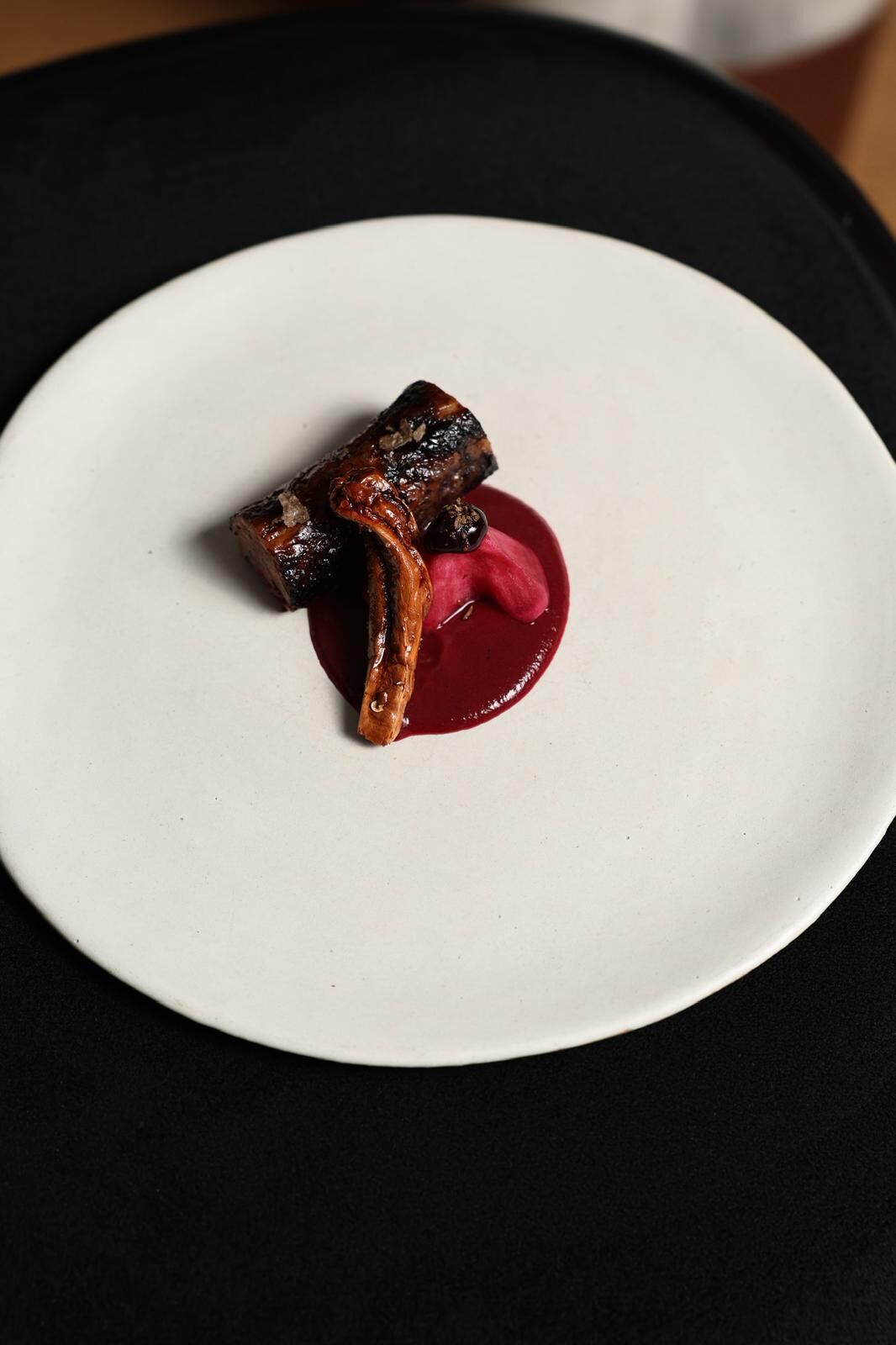 Sonra böğürtlenli bir sos yaptık. Yine yaban kaldı. Sonra marmelat benzeri bir form denedik, yine şalgam kullandık. Aslında tabağın her noktasında şalgam var ama baskın tadı ciğer veriyor çünkü çok güçlü bir aroması var. Böğürtlen ve şalgam o baskıyı dengeliyor. Sakatat sevmeyen insanların da sevmesini sağlayan denge bu oldu.