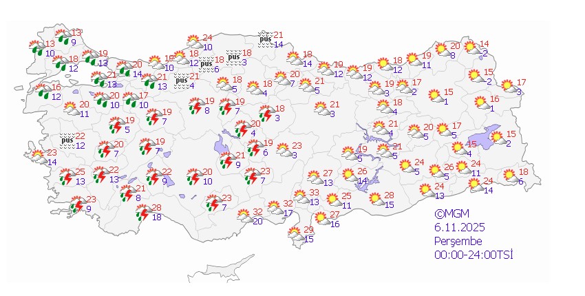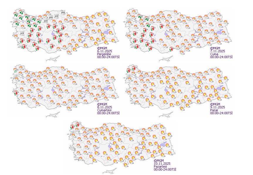 Türkiye genelinde hava genellikle parçalı çok bulutlu olacak; Marmara'nın batısı, İç Ege, Batı Akdeniz, İç Anadolu’nun batısında sağanak ve gök gürültülü sağanak yağış etkili olacak.