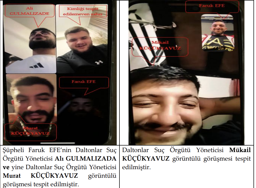 Sosyal medya hesaplarında yapılan paylaşımlar, şüpheli beyanları, kolluk birimlerince gerçekleştirilen çalışmalar ile birlikte şüphelilerin telefon inceleme tutanaklarında tespit edilen üçüncü kişiler ile yapmış oldukları yazışmalar incelendi.