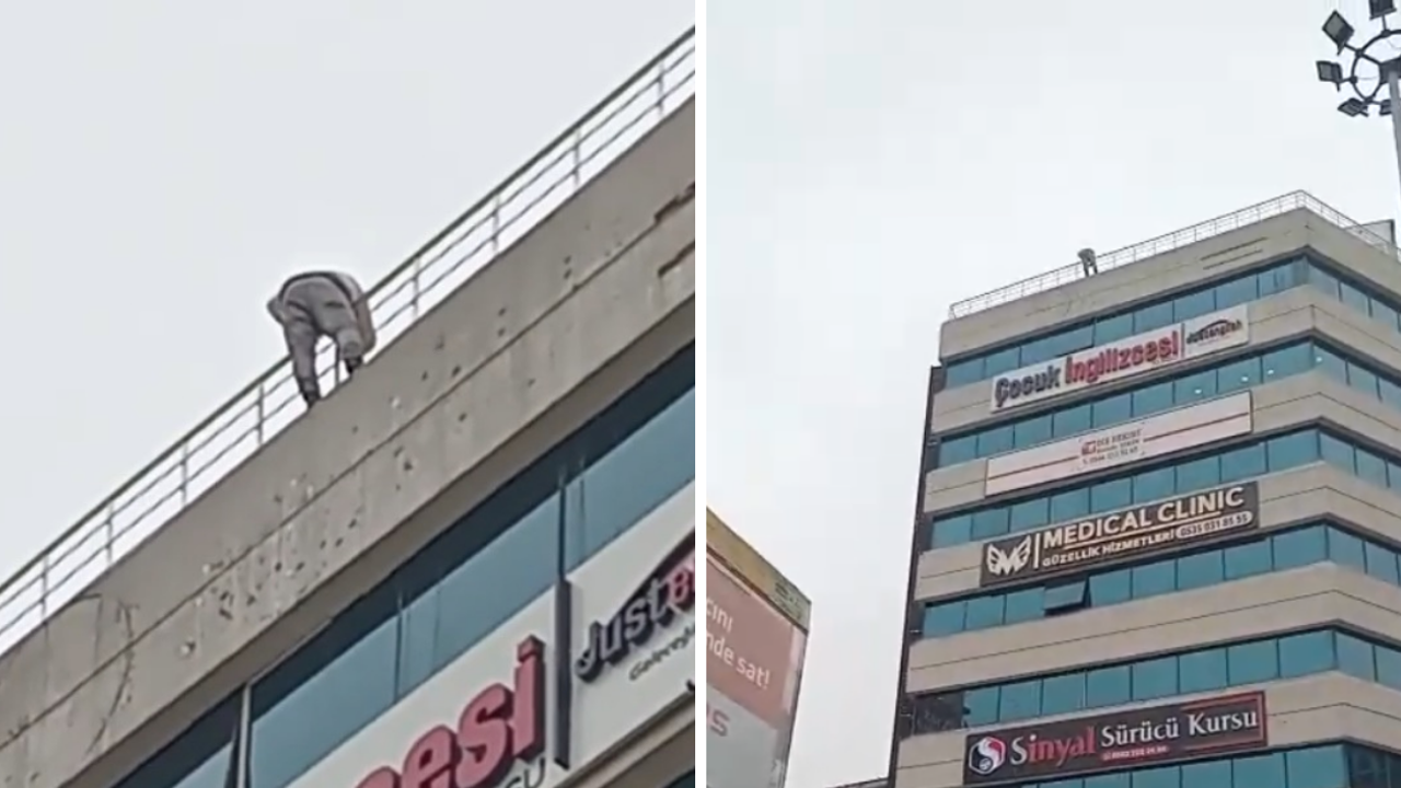 Binanın en üst katındaki teras korkuluklarını aşarak beton bloğun ucuna kadar gelen şahsı görenler büyük panik yaşadı. Şahsın zaman zaman aşağıya doğru sarktığı ve tehlikeli hareketlerde bulunduğu görüldü.