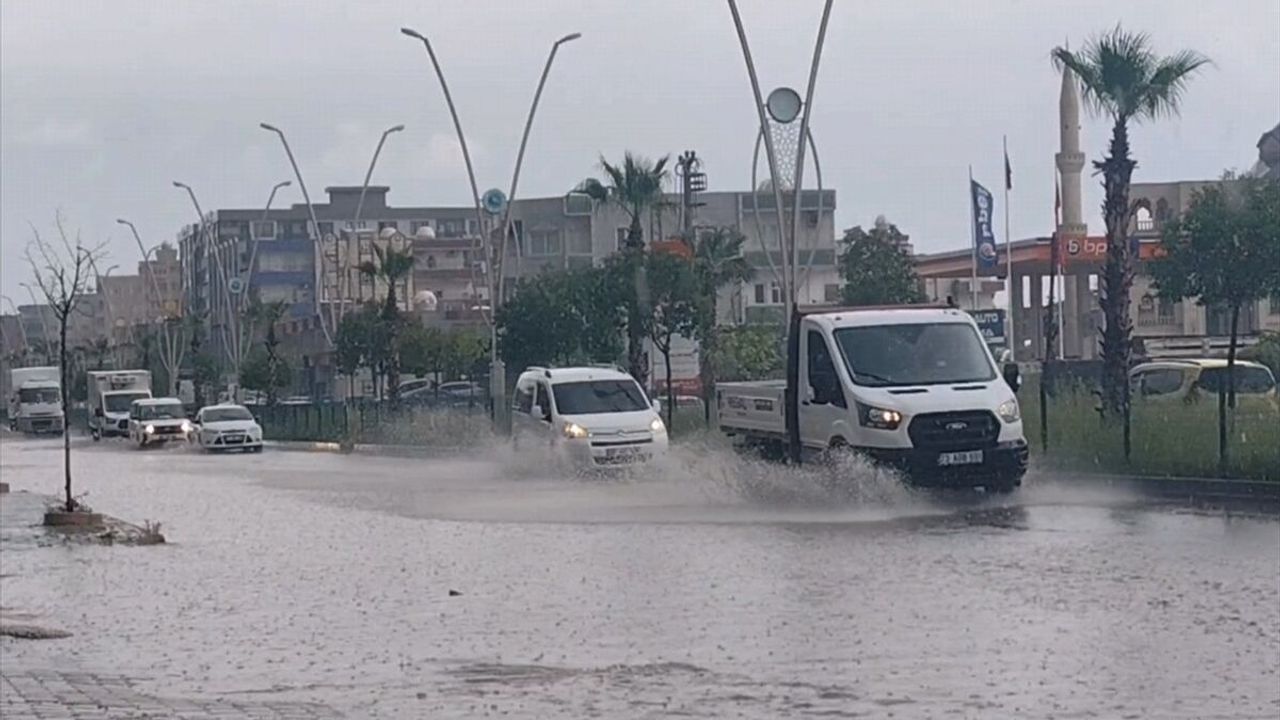 Şırnak'ın Silopi ilçesinde etkili olan sağanak ve dolu nedeniyle cadde ve sokaklarda oluşan su birikintileri ulaşımda aksamalara yol açtı.