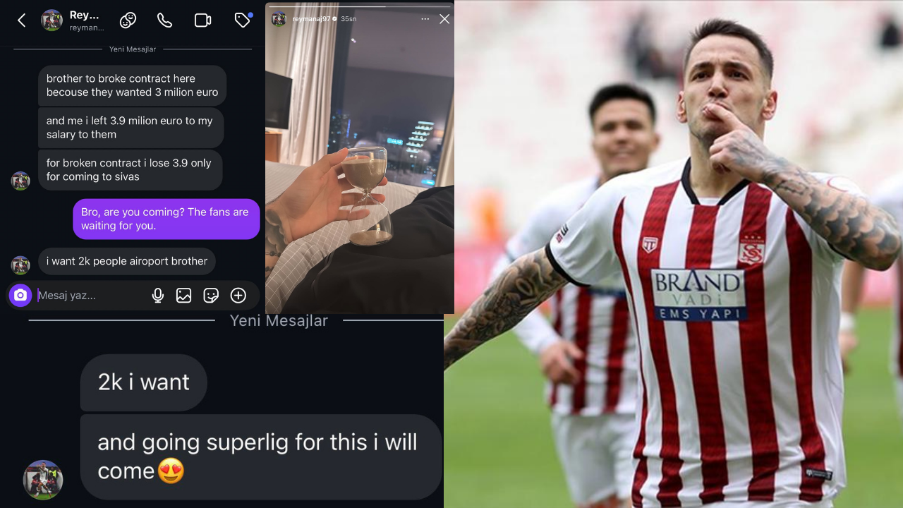 Arnavut golcü Rey Manaj, 1. Lig ekibi Sivasspor’da forma giymişti. Manaj’ın bir Sivasspor taraftarı ile yaptığı mesajlaşma akılları karıştırdı.