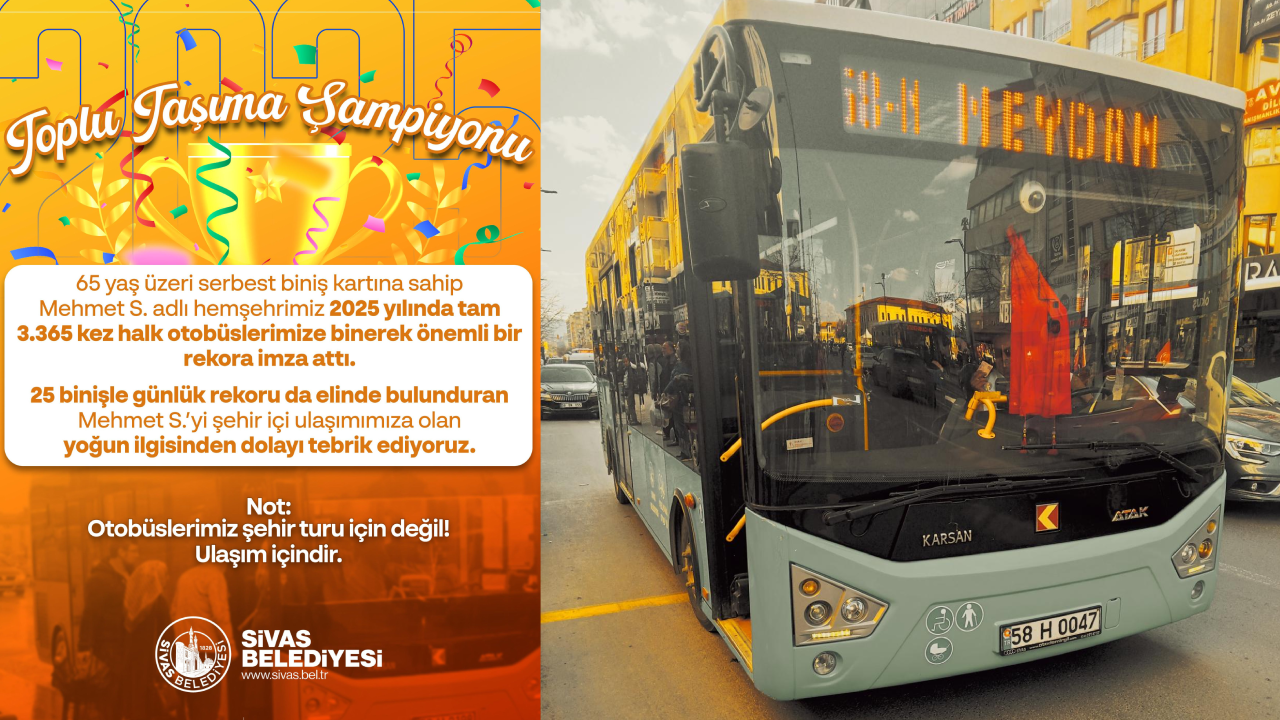 Sivas'ta oturan Mehmet S., ücretsiz toplu taşıma kartıyla rekor denilebilecek bir işe imza attı.