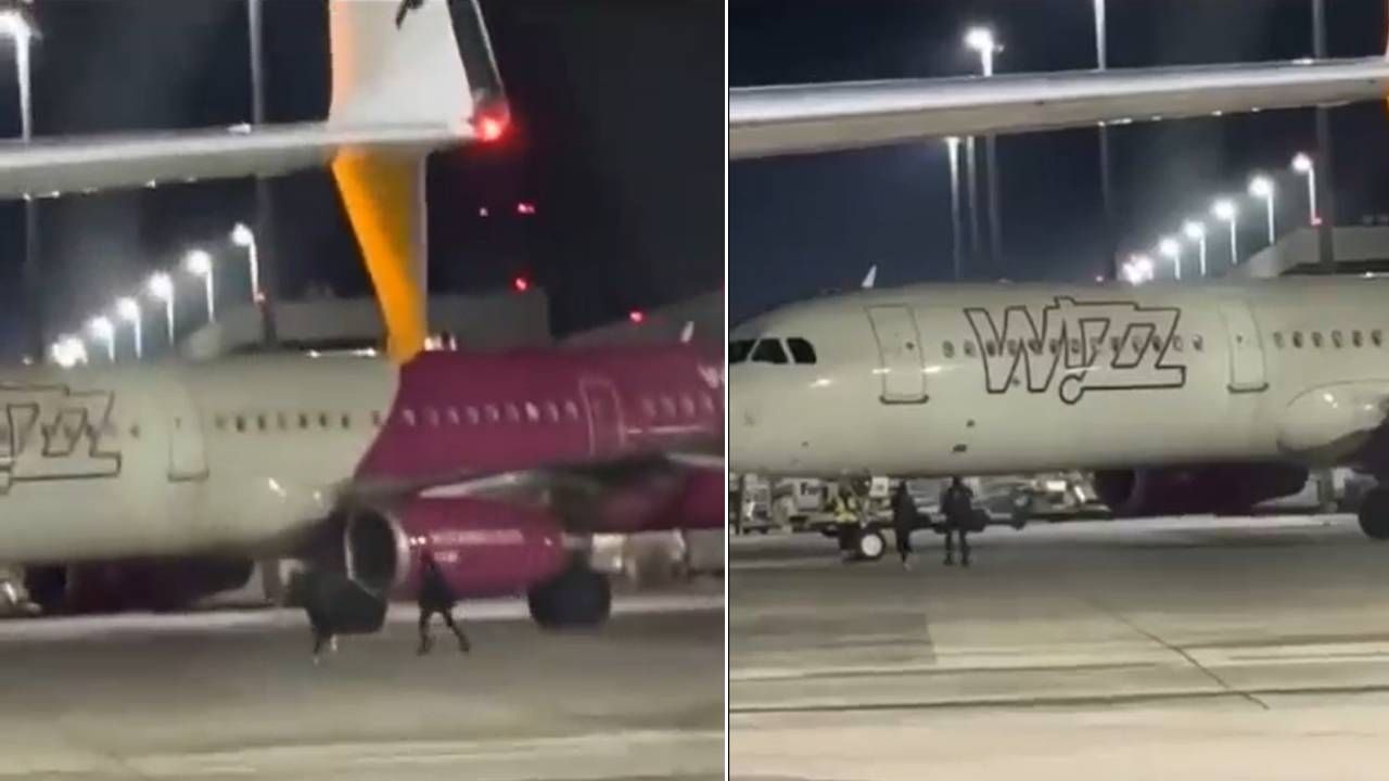 İnternette hızla yayılan görüntülerde, iki adamın Wizz Air'in Bükreş uçağına doğru çılgınca koştuğu, kollarını havaya kaldırarak pilotun dikkatini çekmeye çalıştığı görülüyor. O sırada Airbus tipi uçak, kalkış için piste doğru taksi yapıyordu.