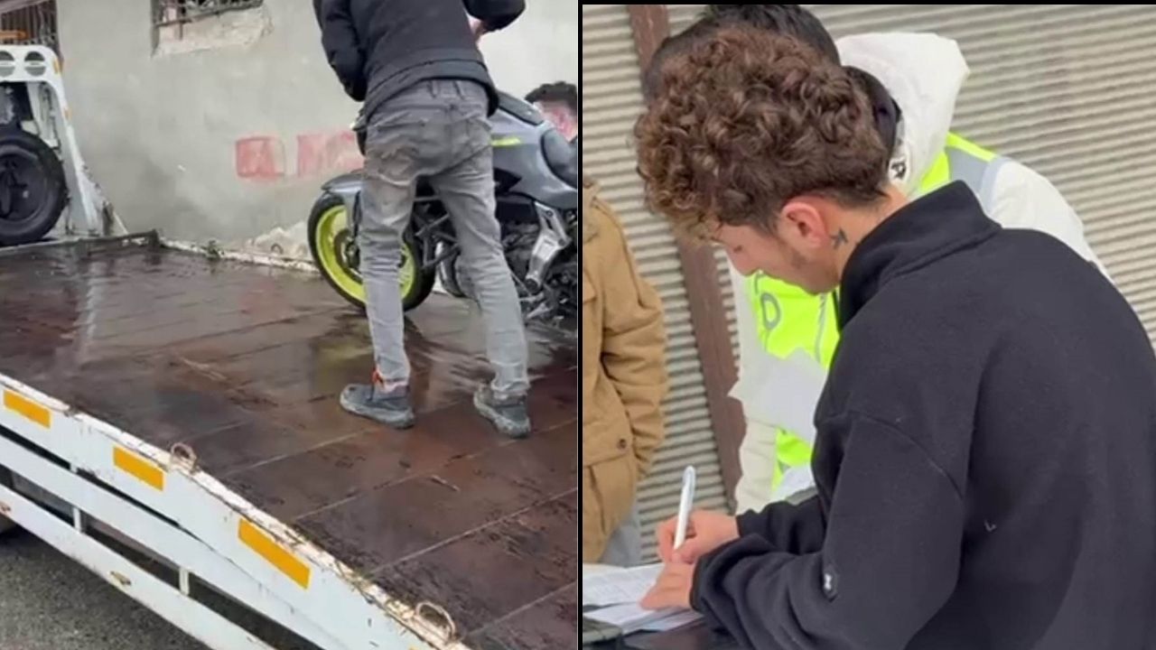 Motosiklet sürücüsüne çeşitli maddelerden 46 bin 350 TL cezai işlem uygulanırken aracı trafikten men edildi, sürücü belgesi ise daimi olarak iptal edildi.