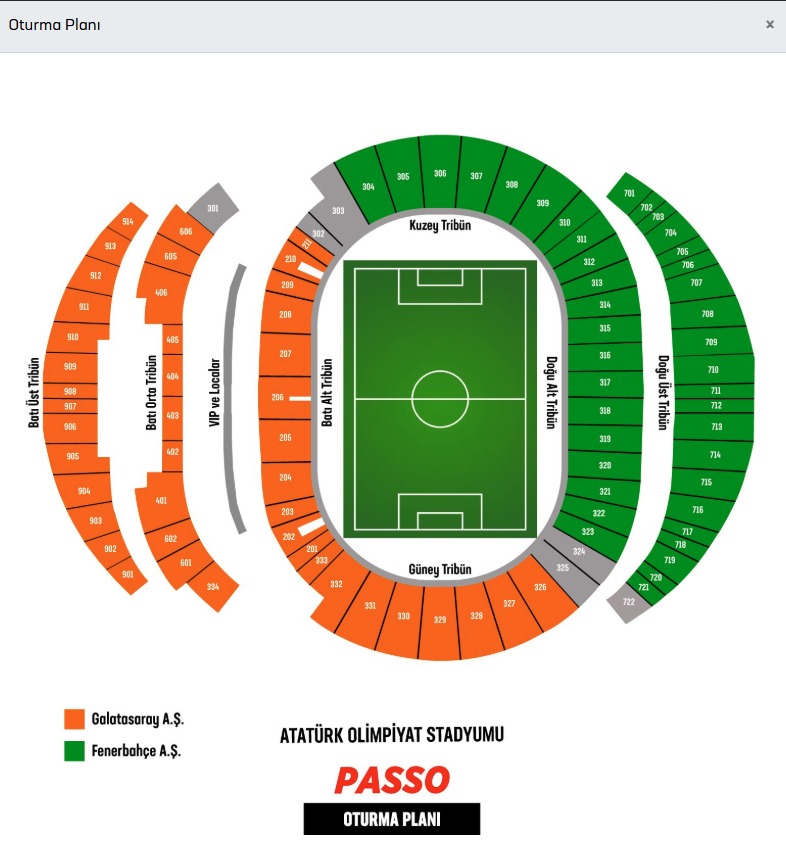 Finalde Galatasaray taraftarı Güney ve Batı, Fenerbahçe taraftarları ise Doğu ve Kuzey tribünlerinde yer alacaklar.
