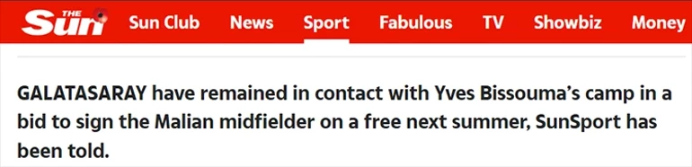 İngiliz basınında yer alan haberlere göre Sarı Kırmızılılar, Bissouma cephesiyle teması yeniden kurdu. Galatasaray’ın tecrübeli ön liberoya 3 yıllık sözleşme önerdiği ifade edildi. Bu sezona sakatlık problemiyle giren Bissouma’nın önceliği ise yeniden form tutup Tottenham’da süre almak. Deneyimli oyuncu, sezon sonunda durumuna göre kesin kararını vermek istiyor.