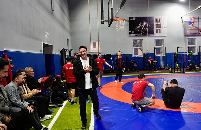 Milli güreşçilerin kamp yaptığı Mersinli Ahmet Kireççi Güreş Milli Takımlar Kamp ve Eğitim Merkezi’ni ziyaret eden Özil, lig yarışına ilişkin değerlendirmede bulundu.