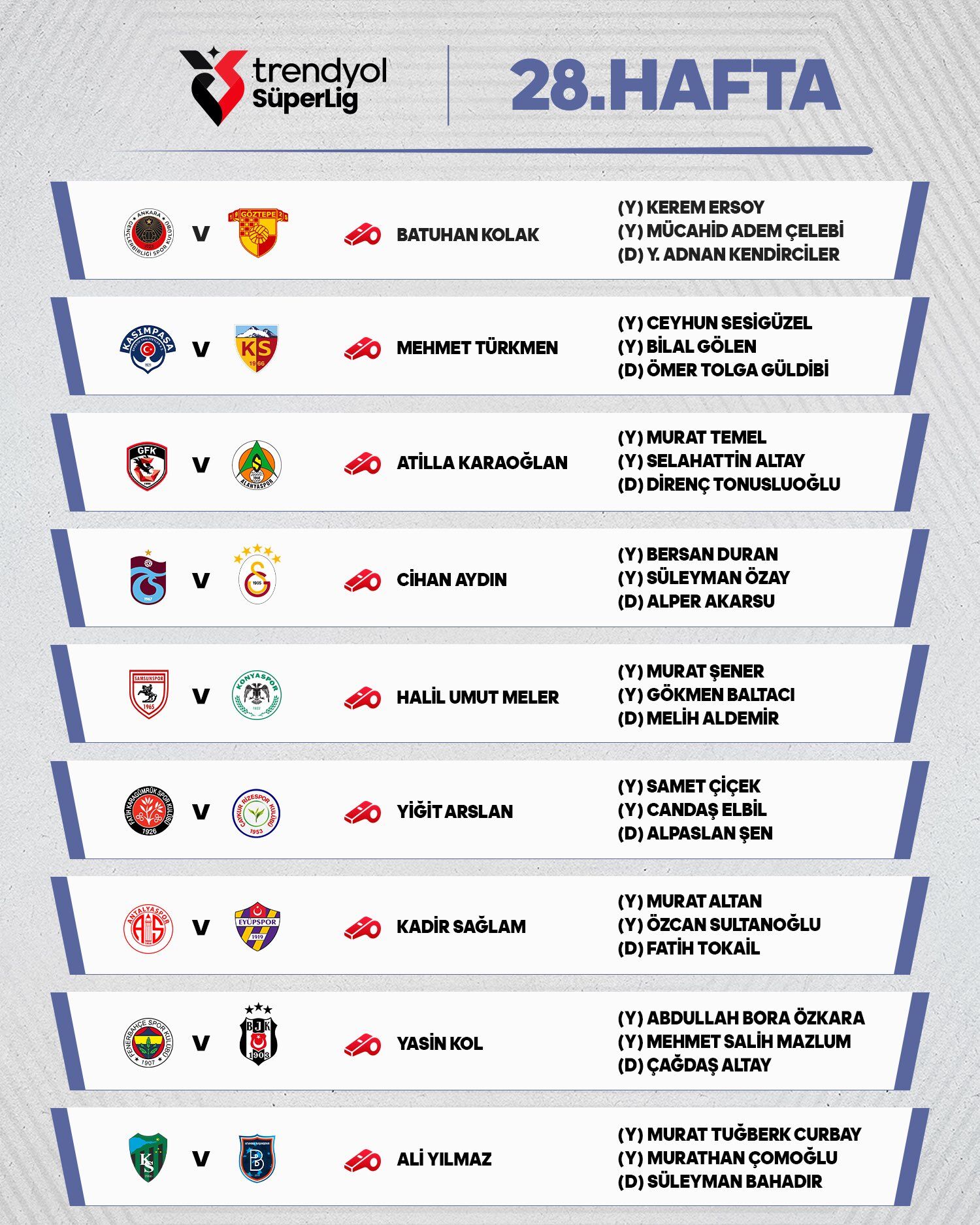 Trendyol Süper Lig'in 28. haftasında oynanacak maçların ve derbilerin hakemleri belli oldu.