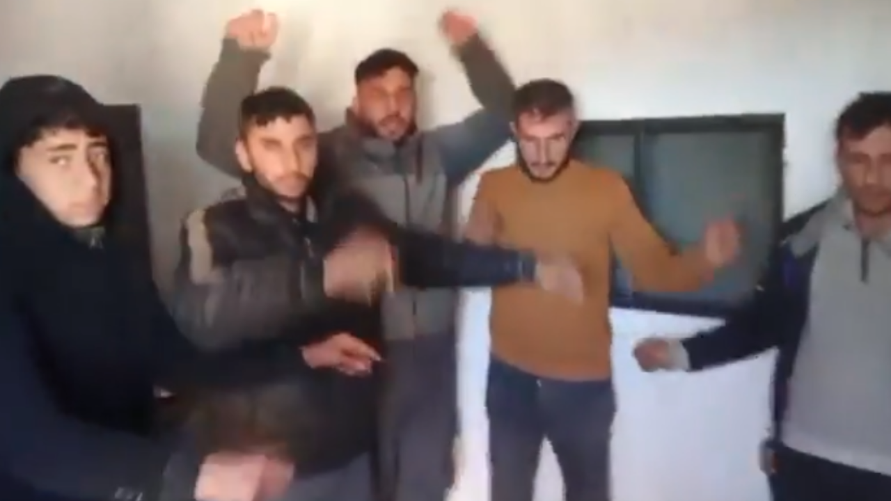 Suriye ordusu, yakalanan YPG-PKK'lı teröristleri "Ebu Amşe komutanımız" şarkısıyla oynatıp video kaydına aldı.
