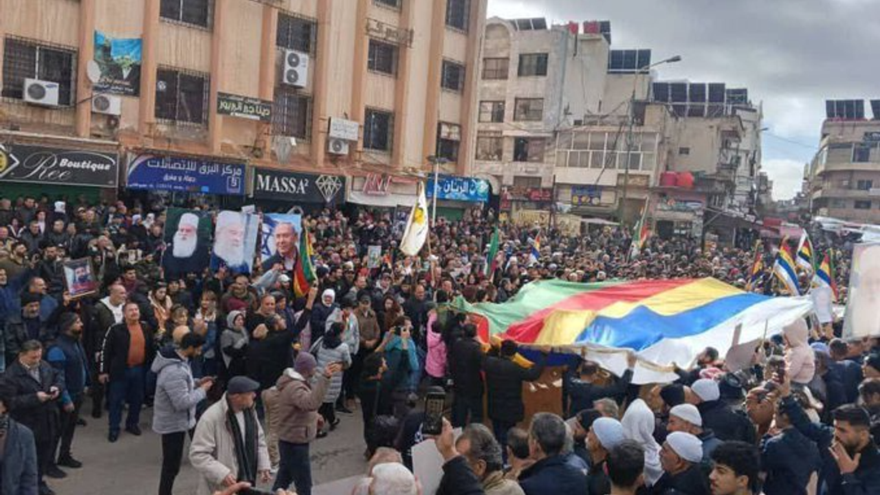 Suriye’nin güneyindeki Süveyda kent merkezinde, Dürzilerin bir kesiminin lideri olarak bilinen Hikmet el-Hecri’ye bağlı grupların düzenlediği gösteri, ülkede büyük tartışmalara yol açtı. "Olmak ya da olmamak" sloganıyla gerçekleştirilen yürüyüşte, taşınan semboller dünya kamuoyunun dikkatini çekti.