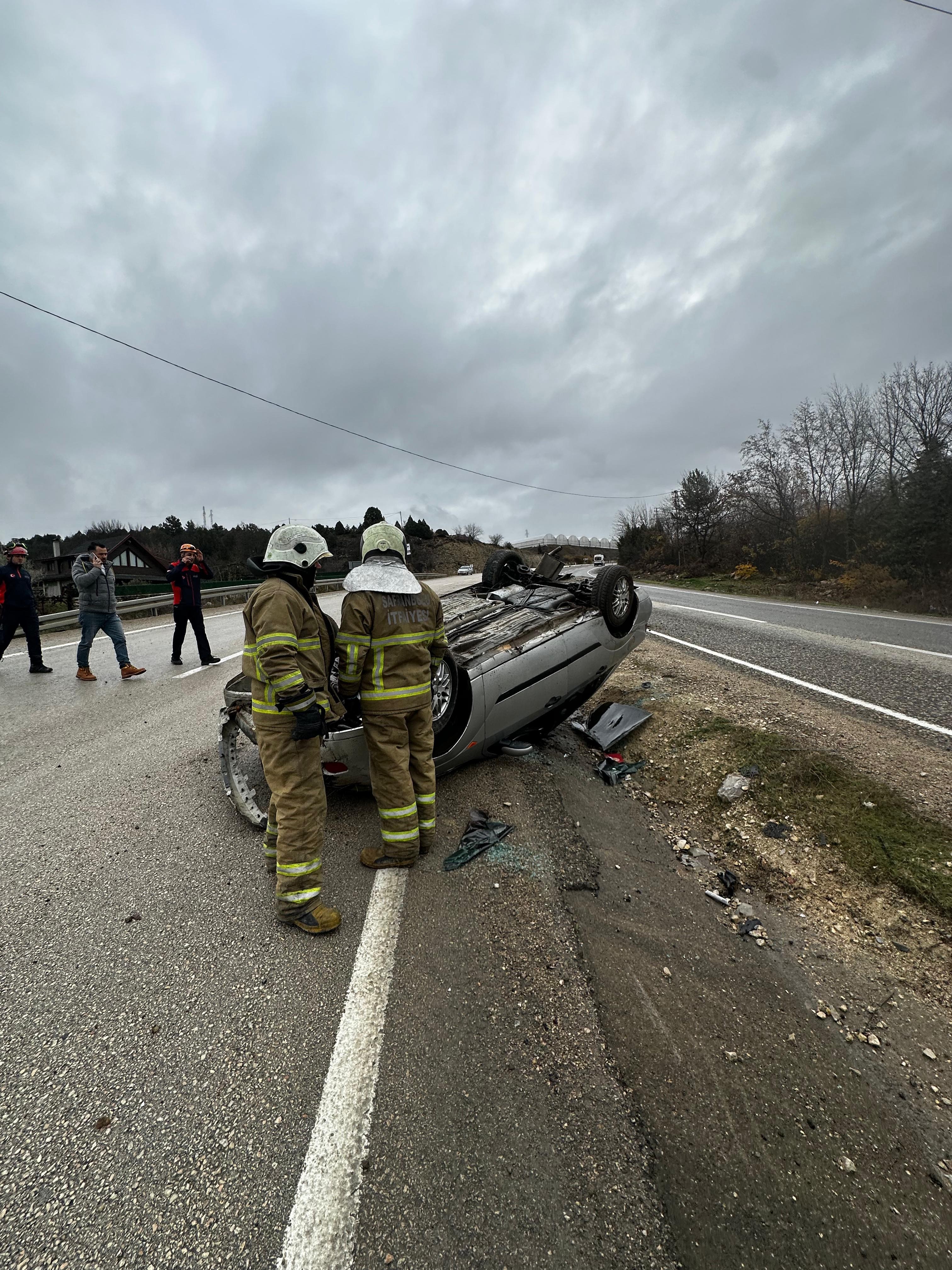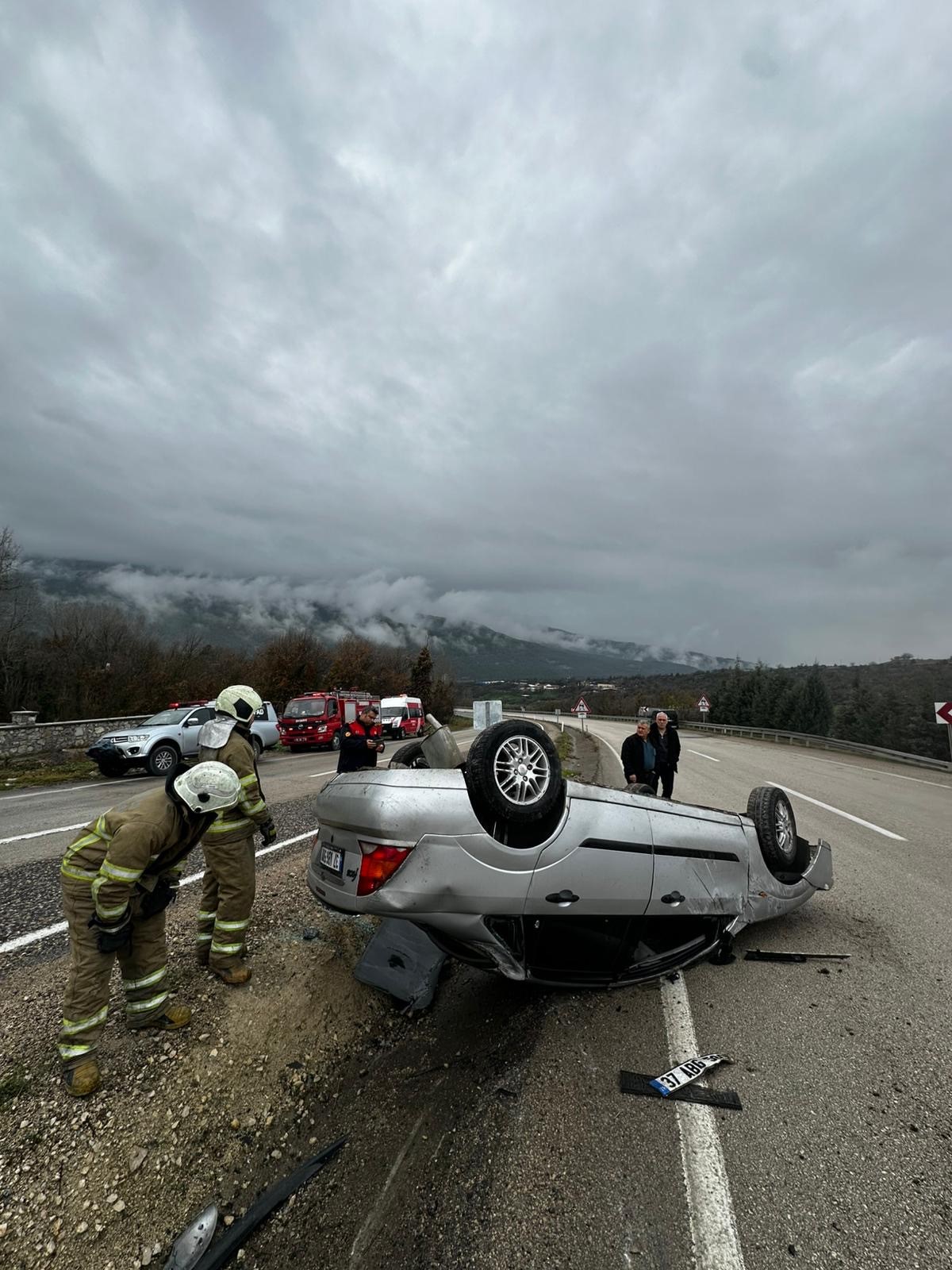 Karabük'ün Safranbolu ilçesinde meydana gelen trafik kazasında, kontrolden çıkan bir otomobilin takla atmasına rağmen sürücü kazayı yara almadan atlattı.