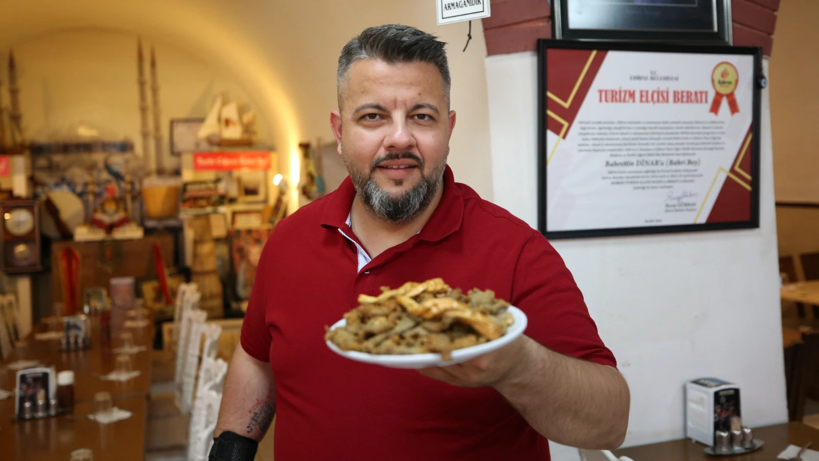 "Edirne’nin resmi turizm elçisi rahmetli Bahri Dinar’ı da buradan rahmet ve minnetle yad ediyoruz. Kendisinin kent tanıtımına ve biz ciğercilere çok katkısı oldu. Edirne’nin turizmini ve tava ciğerini bu konuma getirerek bize en üst seviyede bıraktı. Biz de dükkanımızı yenileyerek bu işe başladık. Bundan sonra Edirne'yi tanıtım bayrağını elimize aldık ve daha yükseklere taşımayı amaçlıyoruz"