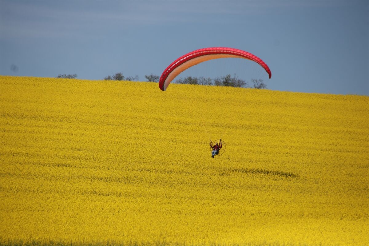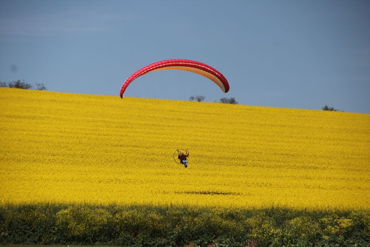 Tekirdağ'da yaşayan paraşüt eğitmeni Kadir Aksoy, kanola tarlası üzerinde paramotorla uçuş gerçekleştirdi. Aksoy, farkındalık oluşturmak ve kentin renkli tarlalarına dikkati çekmek için etkinlik yapmak istedi.