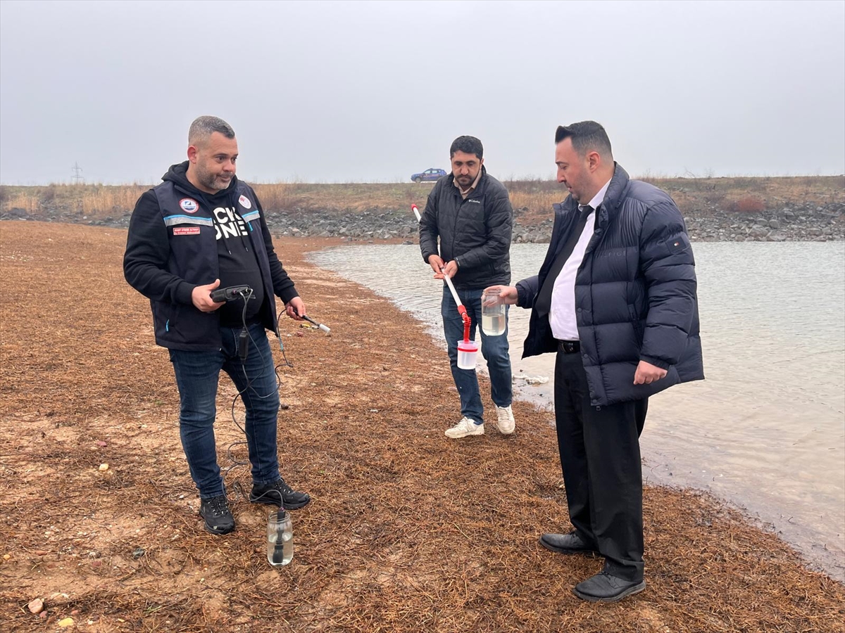 İl Tarım ve Orman Müdürlüğü ekipleri, balık ölümlerinin nedeninin belirlenmesi amacıyla göletten numune alarak inceleme başlattı.