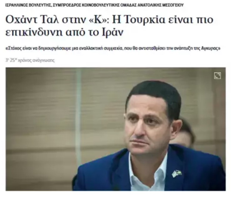 Toplantının moderatörlüğünü üstlenen ve Türkiye’ye yönelik sert çıkışlarıyla bilinen Ohad Tal, Yunan medyasından Kathimerini’ye verdiği röportajda çok tartışılacak şu ifadeleri kullandı: